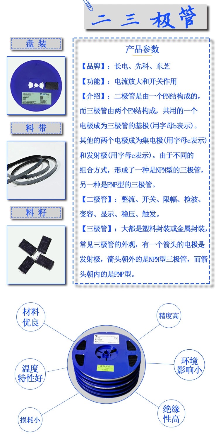 貼片三極管基本作用是放大,它可以把微弱的電信號(hào)放大到一定強(qiáng)度,當(dāng)然這種轉(zhuǎn)換仍然遵循能量守恒,它只是把電源的能量轉(zhuǎn)換成信號(hào)的能量罷了。